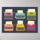 Ob Sie Autor Ihres ersten Buches sind oder Autor des großen amerikanischen Romans sind, zeigen Sie Ihre Leidenschaft für das Schreiben mit diesem Plakat, in dem Vintage Schreibmaschinen in leuchtenden Süßigkeiten dargestellt werden.