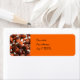 Halloween-Adressetiketten mit einem nahen Foto von Süßmais mit orangefarbenem Hintergrund. Hintergrundfarbe, Schriftart und Text können individuell angepasst werden.