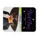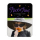 Niedlicher Halloween-Magnet mit "Trick or Treat" in einem lila handgeschriebenen Drehbuch, umgeben von Zuckermais und lila, cremefarbenen, gelben und orangefarbenen Punkten. Personalisieren Sie den bunten Halloween-Magneten, indem Sie Ihren Familiennamen, das Jahr und ein Foto hinzufügen.