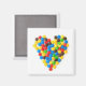Magnet mit Herz aus bunten Schokoladenbonbons.