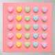 Dieses Design besteht aus fünf Reihen pastellfarbener Süßwarenherzen.