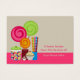 Ein Set mit 100 Rezeptkarten (Cubby Visitenkarten), in dem ein Glas Kugeln, drei Lollipops, ein Stück Schokolade und ein Kuchen dargestellt werden. Personalisieren Sie mit Ihrem Namen. Schreib dein Rezept auf die Rückseite.
