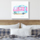 "Je vais commencer à tout recommencer, et me redécouvrir...Je vais à la mer bleue, pour devenir un gitan." - Belle aquarelle bleu et rose vintage camper sur une toile carré, prête à pendre.
