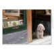 pas sûr que ce soit vraiment un caniche ou une autre race, mais il est très mignon - assis à la porte d'une librairie antique à vienne, en autriche