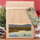 Allein in der Wildnis. Im Inneren von Alaska liegt ein Kanu, in dem das spiegelglatte Wasser des Sees fließt. In der Ferne typische Taiga und Berge. Es erscheint auch das Textlesen "Alaska". Dieses Bild ist von einem Foto des United Staaten Fish and Wildlife Service abgeleitet.