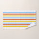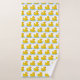 Serviette de bain colorée amusante pour enfants, avec la serviette de bain faite dans un motif de canards en caoutchouc jaune. La serviette est faite en rayures jaunes bleues et oranges et le linge est un solide jaune. Customisez d'ajouter le texte que vous voulez.