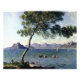 "At Cap d'Antibes" vereint die ruhige und sonnige Schönheit der Côte d'Azur. Dieses Werk spiegelt eine Faszination für die Auswirkungen von Licht und Farbe auf die Landschaft wider. Das Bild zeigt eine ruhige Küstenlandschaft mit schimmerndem blauen Wasser, goldenem Sand und den fernen Alpen. Im Vordergrund steht eine lebendige mediterrane Vegetation wie Kiefern und Olivenbäume, die mit einem zarten Pinsel für Bewegung und Licht ausgeliefert werden. Die friedliche und idyllische Atmosphäre verkörpert die Wärme und Lebendigkeit der französischen Südküste. Dieses Gemälde ist ein hervorragendes Beispiel für die Meisterschaft, die die transienten Eigenschaften der Natur, die für den Impressionistischen Stil von zentraler Bedeutung sind, erfassen kann.