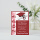 Abschluss Einladung, Cap & Diploma Thema, mit "Jahr" Kunstwerk, in Rot und Weiß, mit rotem Hintergrund. Die Rückseite der Einladung beinhaltet den Namen des Absolventen, Kann mit Ihren eigenen Bildern, Kunstwerken, etc. personalisiert werden.