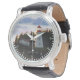Uhr, Vintage Männeruhr mit schwarzem Lederarmband