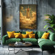 A mid-century retro vintage illustration of a rocket launch at Cape Canaveral, inspired by classic space exploration posters. Warm golden tones, soft textures, and a nostalgic atmosphere evoke the optimism of early space travel. This artwork celebrates human exploration and retro futurism, bringing iconic space history and timeless design to mid-century modern and vintage-inspired interiors.