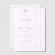 CAPE CSB Küste Mute Navy Blau Moderne Minimalistische Hochzeitsvellum Einladung. Features, modernes, minimalistisches Design der Typografie mit Details zur Muschel der Jakobsmuscheln.