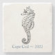 Erinnern Sie sich an Ihren Sommerurlaub mit diesem Souvenirgetränk-Untersetzer. Weißer Marmor mit Seepferd-Aufdruck, Lage und Jahr. Ändern Sie Ort und Jahr, um es zu Ihrem eigenen zu machen.