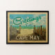 Diese Gruß aus Cape May Vintage Postkartendesign verfügt über einen Sandstrand mit einem schönen türkisfarbenen Ozean Wasser und über dem Meer, einen blauen Himmel mit billigen weißen Wolken. Im Vintage Reisen Stil.