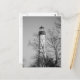 Das ist ein Schwarz-Weiß-Foto des Leuchtturms von Cape May. Es ist bekannt als Cape May Light und liegt im südlichen New Jersey im Cape May Point Staat Park. Der Leuchtturm liegt an der Spitze von South Jersey und dient als Leuchtturm für ankommende Schiffe. Dieses landschaftliche Foto wurde im Winter genommen, und der Leuchtturm kann durch die nackten Baumzweige im Vordergrund gesehen werden. Der Leuchtturm ist eine NJ-Sehenswürdigkeit, eine touristische Attraktion von Kap Mai und ein schönes Stück Architektur.