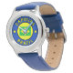 Kinderuhr aus Edelstahl mit blauem Lederarmband