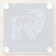 Untersetzer aus Glas mit dem Sternensymbol für Capricorn in weichem silberblauem Blau, überlagert mit den Sternen der Sterne, vor einem Sternenhimmel, der von tiefblauem bis schwarzem Mitternachtsblau gewertet wird.