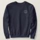 Kapitän personalisiert Ankerpullover. Klassisches Rundemblem mit Namen und Bootnamensfeldern. Weißer Text.