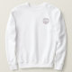 Personalisiert Kapitän mit Ihrem Namen und Bootsnamen nautischer Anker Logo weißes Sweatshirt. Weiße Umrandung mit marineblau Anker und Text mit Maronklappen. Vorderseite links.