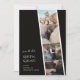 Mit der Einführung unserer faszinierenden "Capture Liebe" Wedding Save the Date Card, einer bezaubernden Mischung aus Nostalgie und zeitgenössischer Ästhetik in Foto. Dieses einzigartige Design verkörpert das Wesen Ihrer gemeinsamen Reise und lädt Liebhaber ein, ihre Kalender für Ihren besonderen Tag zu markieren. Der Hintergrund strahlt eine Vintage Anziehungskraft aus und erinnert an die klassischen Foto-Messestände, die wertvolle Erinnerungen enthalten. Moderne Schwarz-Weiß-Farbtöne bilden das Fundament dieser trendigen Farbpalette, die Gefühle von Romantik und Zeitlosigkeit hervorruft. Diese Farbtöne verflechten sich anmutig und schaffen eine harmonische Kulisse, die den Hauptfokus der Karte unterstreicht. Im Vordergrund steht eine kunstvolle Anordnung Ihrer Lieblings-Verlobung-Fotos im Zentrum der Bühne. Jeder Rahmen hält einen gepflegten Augenblick in der Zeit fest und lädt die Gäste ein, an Ihrer freudigen Reise teilzunehmen. Der Schriftart, der den Text verbindet, verkörpert moderne Eleganz. Die wichtigsten Details, wie die Namen des Ehepaares und das Hochzeitsdatum, sind schön in einem raffinierten Serif-Schriftart geschrieben. Dies ergänzt kontrastvoll den Begleittext, der einen eleganten Kalligraphie-Schriftart verwendet. Die Kombination spiegelt nicht nur die Dualität Ihrer Liebe wider, sondern fügt dem Gesamtdesign auch eine Touch der Verfeinerung hinzu.