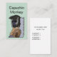 Capuchin Monkey Art Business Card entworfen von Nisha Prabhu. Das ist mein originales Capuchin-Affen-Illustrations-Portrait. Vollständig anpassbar. Personalisieren Sie Ihre Daten. Die Capuchin Monkey Art Business Card! Diese Visitenkarte ist ein einzigartiger und auffälliger Weg, um einen unvergesslichen Eindruck verlassen. Die Vorderseite der Karte zeigt ein fesselndes und visuell atemberaubendes Stück Kapuzinerkunst, das Aufmerksamkeit erregt und Neugier ausstrahlt. Die faszinierenden Details und lebhaften Farben zeigen die künstlerischen Fähigkeiten dieser phantastischen Kreaturen und verlassend Empfänger beeindruckt. Auf der Kartenrückseite werden die wesentlichen Kontaktinformationen korrekt angezeigt, sodass potenzielle Kunden und Geschäftspartner leicht erreichbar sind und Verbindungen herstellen können. Das Design ist elegant und beruflich, ergänzt das auffallende Kunstwerk an der Vorderseite und bewahrt gleichzeitig einen polierten und organisierten Look. Ob Künstler, Designer oder einfach nur jemand, der will, einen bleibenden Eindruck zu machen, diese Visitenkarte ist die perfekte Wahl, um Ihren einzigartigen Stil und Ihre Persönlichkeit zu präsentieren. Die Aushändigung dieser Karten bei Veranstaltungen, Tagungen oder während der Vernetzung wird zweifellos Gespräche anstoßen und unvergessliche Verbindungen schaffen. Erleben Sie mit der unglaublichen Capuchin Monkey Art Business Card einen bleibenden Eindruck - ein Gesprächsstarter und ein Kunstwerk in einem.