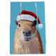 Capybara feierlich in Weihnachtsmannmütze Mittlere Geschenktüte