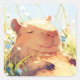 Dieser reizende Capybara-Aufkleber besticht durch eine friedliche Capybara, die in einer sonnigen Wiese, umgeben von zarten Wildblumen, zurückliegt. Mit geschlossenen Augen und einem weichen Lächeln strahlt die Capybara pure Entspannung und Freude aus. Das warme Sonnenlicht, das durch das Gras und die Blume gefiltert wird, sorgt für eine traumhafte und ruhige Atmosphäre. Die sanfte Mischung aus Blume in Gelb, Blau und Weiß schafft eine ruhige und natürliche Umgebung, die dieses Design perfekt für Capybara-Liebhaber, Naturliebhaber und diejenigen macht, die gemütliche und aufregende Bilder genießen.