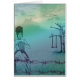 Tricot de fille dehors. Teinte bleue. Barbelé et un arbre avec une oscillation. Également quelques birdies. Son une carte assez douce !