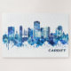 Blue Watercolor Skyline von Cardiff, die Hauptstadt Wales und ihre größte Stadt, die elftgrößte Stadt im Vereinigten Königreich