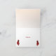 Ce joli carte de remerciements artistique abrite l'un des plus beaux oiseaux du monde, le Cardinal du Nord. Le voici avec son brillant plumage rouge perché sur une branche d'un pommier en fleurs. Les fleurs roses et blanches sont l'arrière - plan idéal pour mettre en valeur les plumes écarlates de ce magnifique oiseau ! Deux petits cardinaux se trouvent à l'intérieur sur un dégradé brun orange pâle. Le texte peut être customisé pour votre occasion spéciale.