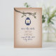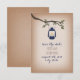 Eine Hochzeit speichert das Datum mit einer Abbildung einer blauen Laterne aus Camping, die an einem Baumzweig mit grünen Blätter hängt. Personalisieren Sie den Text. Hintergrund ist ein inspirierter Kartenbestand. Suchen Sie nach passenden Hochzeitseinladungen und anderen passenden Gegenständen in Jill's Paperie.