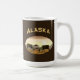 Zwei Karibu-Bullen ringen während des Sturzes rutschen im Norden, während die Sonne im Hintergrund Sets. Es erscheint auch das Textlesen "Alaska", zusammen mit einem Ort, um Ihren eigenen Text hinzuzufügen.