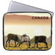 Zwei Karibu-Bullen ringen während des Sturzes rutschen im Norden, während die Sonne im Hintergrund Sets. Es erscheint auch das Textlesen "CANADA".
