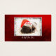 Un carte de visite d'étiquette-cadeau qui dit : Un cadeau pour vous. Avec votre nom et les mots : Amour & Carlins écrits sur le dos. Illustré avec une adorable photo d'un chiot carlin qui dort en portant un chapeau santa. Joyeux Noël est écrit sur la bande de son casquette, dans une police manuscrite branchée. Une bordure grinçante avec des lumières de Noël colorées entoure le cadre de cette jolie photo. Arrière - plan est une image abstraite rouge.