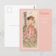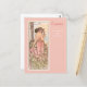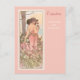 Eine schöne Kunstpostkarte mit der Vintagen Illustration von Alphonse Mucha aus der Blume Series, Carnation (1898), die digital restauriert und verbessert wurde. Ein Portrait einer Frau in einem rosa Gewand, umgeben von einem Feld aus rosa und weißen Nelken.