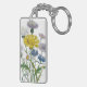 Illustration botanique ancienne des fleurs de maïs en bleu, jaune et blanc.