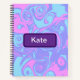 This simple notebook has an abstract swirl pattern with pink purple blue colors. Its super simple and easy to edit this notebook and place your own name or what this notebook is for where the word Kate is located.