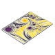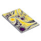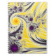 Ce carnet unique présente une fractale en spirale soyeuse abstraite en jaune, noir et violet.