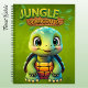 Personalize the back cover of this adorable "Jungle Welcome" notebook! Whimsical baby box turtle cartoon graphic animal character on a forest green background. This design is perfect for tortoise lovers, safari woodland nature wildlife fans, and anyone who enjoys cute, cozy zoo vibes.