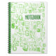Le Carnet Alphabet (Vert) est un journal vert et blanc unique, qui présente divers gribouillages des 26 lettres de l'alphabet en différentes polices, le tout contre un arrière - plan blanc. Disponible dans d'autres options de couleur. © Matin 6
