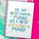 Citation positive, écrit à la main sur la vie et la créativité dans un journal à couverture souple...comment allez-vous vous "créer vous-même" ?