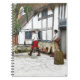 Deux fermiers Tudor profitent d'un temps de qualité, l'un à la recherche d'ale et l'autre jouant un tambour. Angleterre Royaume-Uni. Aquarelle.