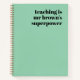 Un carnet minimaliste pour les enseignants avec une typographie rétro vintage "l'enseignement est la superpuissance de [le nom de l'enseignant]" en noir sur un arrière - plan vert sage. Le cadeau parfait pour n'importe quel enseignant !