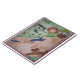 Illustration d'une fille courant avec son chien, tenant un panier dans sa main.