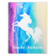 Aquarelle arc-en-ciel et carnet silhouette de licorne blanche avec nom personnalisé.