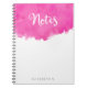 Un carnet spiral personnalisé avec une police tendance qui dit "Notes" en haut et personnalisée avec votre nom en bas. Un design mignon avec un éclat de peinture à l'aquarelle rose vif.