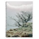 Un arbre de montagne couvert de gel solitaire avec des nuages de neige dans le ciel. Pays de Galles Royaume-Uni.