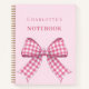 Un carnet féminin pour l'école, la journalisation ou le journal. Un arrière - plan rose pâle et doux, décoré d'un grand arc à carreaux. Personnalisez et ajoutez un nom.