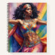 Una acuarela que captura la esencia de la danza del vientre. La bailarina de piel oscura resplandece con un traje arcoíris que refleja la alegría y la belleza de la danza.