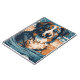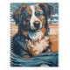 Design coloré d'art vif d'un berger australien sur une plage tropicale.