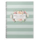 Gardez le suivi de vos rendez-vous, données clients et plus encore avec notre carnet floral chic. Le design comporte un ton sur ton sauge vert rayé arrière - plan avec votre nom et/ou nom d'entreprise sur un badge floral aquarelle avec des grappes de rose rousse, pêche et crème rose et des fleurs de pivoine. Idéal pour les salons, stylistes, maquilleurs ou tout commerce.